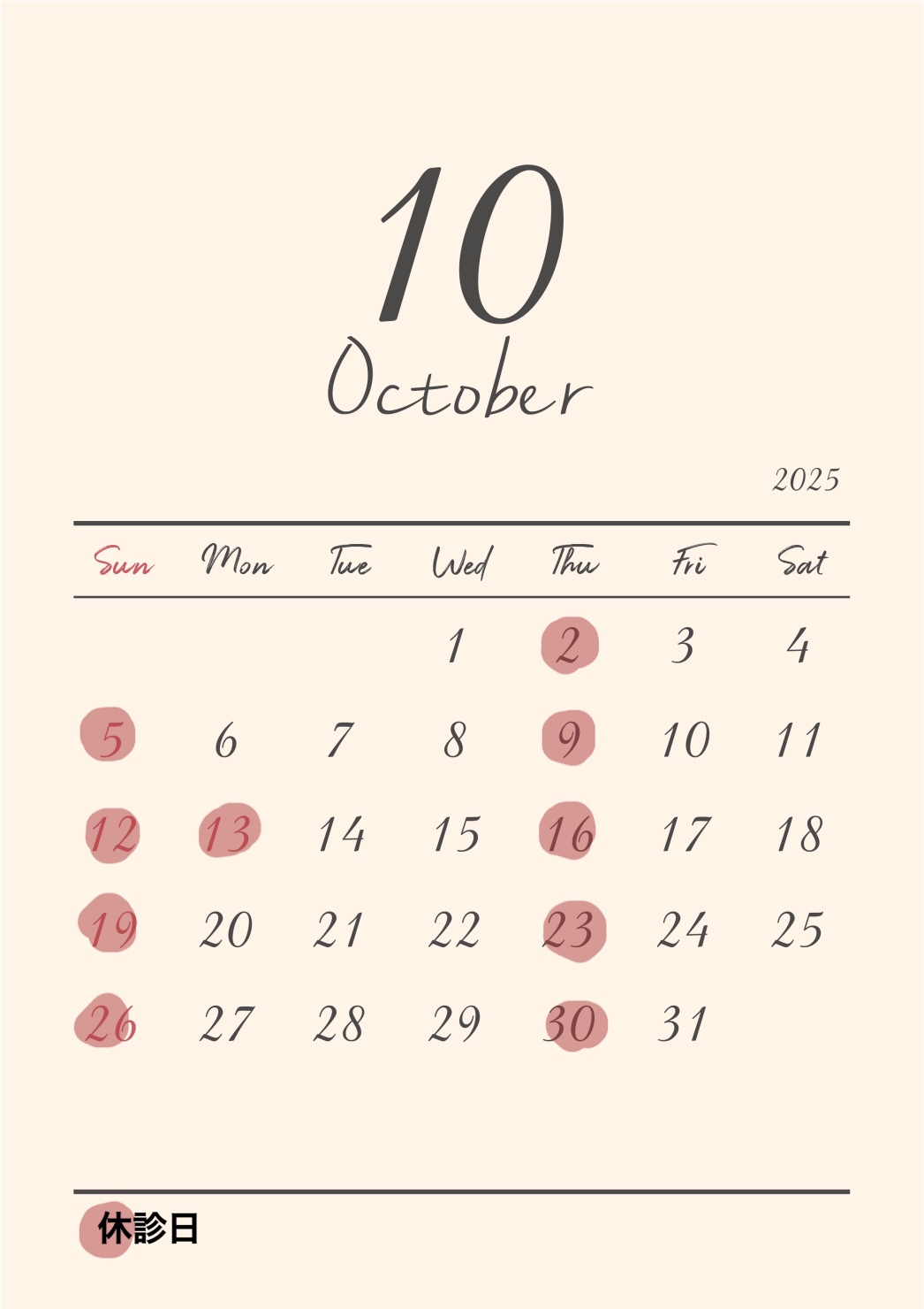 遅くなりましたが、10月診療日のお知らせです🎃